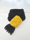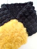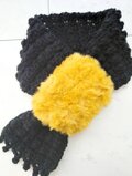 マフラー ブラック 黒 模様 柄 マスタード からし ファー 編み 手編み 編み物