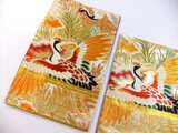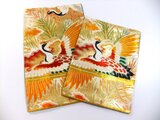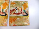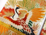 ■年代を感じますが100年前の帯としては状態がよく目立つダメージはありません。飛ぶ鶴文様で金糸も美しく輝き大胆な構図は迫力がございます。裏側は他の帯中無地(正絹)を使用しました。