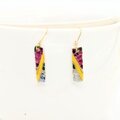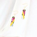 パープルとグレー螺鈿と黄漆の短冊シェルスティックピアスイヤリング【2097】