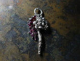 蔦やお花、蕾カレンシルバーとたわわなガーネット&インドシルバー鈴のペンダントトップ