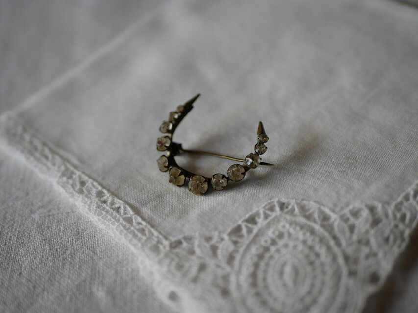 ペーストガラスのクロワッサンブローチ アンティークブローチ フランスアンティーク