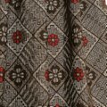 菱形の中にソテツの葉や花柄などが入ったシックな可愛らしさのある大島紬です。
