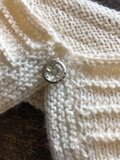 ふわふわなめらかなカシミヤシルク入り混紡の付け襟です。カラーはやさしいオフホワイトでシンプルな襟に懐かしさを感じるビンテージ風ボタンがポイントです。コロンとしたかわいらしい形で透明な中に白いお花と周りにシルバーのラインの組み合わせが美しいボタンです。
