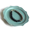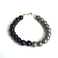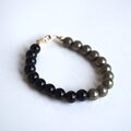 艶やかな漆黒の天然石、モリオンと、燻したようなアンティークゴールドカラーがシックな、パイライトを繋いだブレスレットです♪