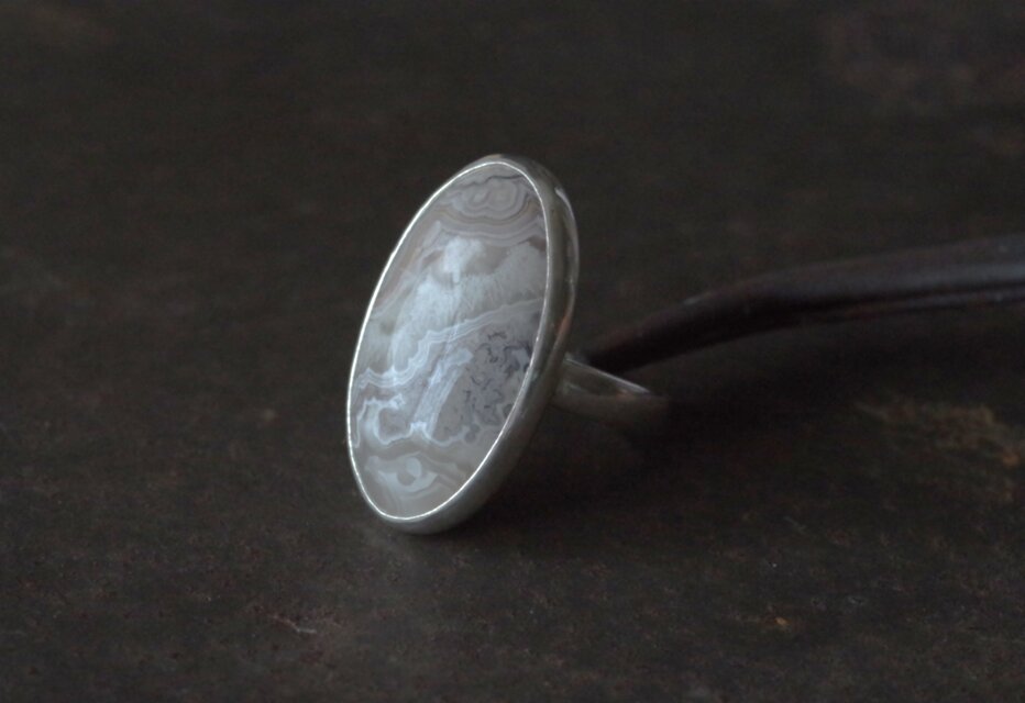 レースのような模様が複雑に混ざり合って独特な模様が見られるアゲート(瑪瑙)をクレイジーレースアゲートというそうですが、今回の石はまさにその名の通り。