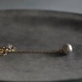 ころんと丸い月のようなカレンシルバービーズと粒々の飾りがついたシルバービーズ(k18コーティング)を組み合わせてペンダントトップにしたネックレスです。