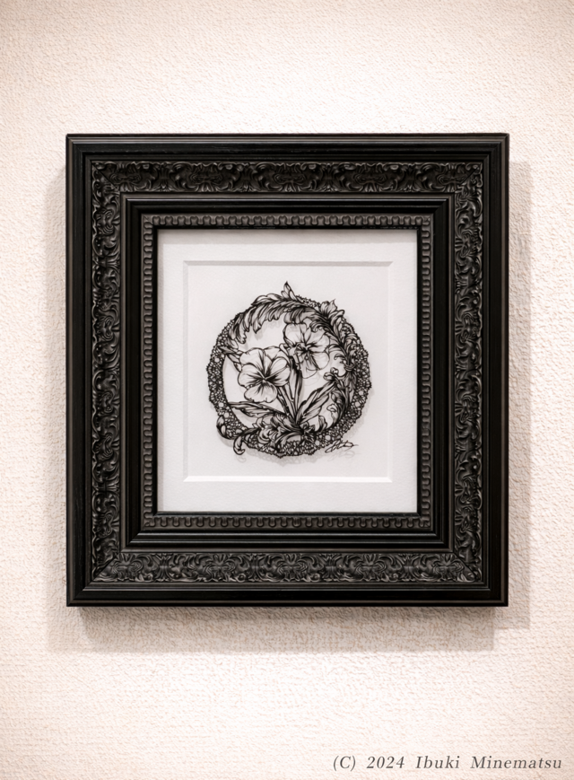 重厚感のある黒のフレームで額装。