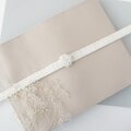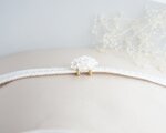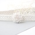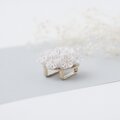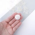 一般的な布ではなく「紙」を素材として使用したつまみ細工です。 紙ならではのさらりとしたマットな質感と、非常に軽い着け心地が特徴。 中心にはゴールドのブリオンをあしらい、純白の花びらの中に上品な輝きをプラスしました。