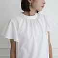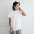 パンツにもスカートにも合わせやすくネック部分のギャザー、ふんわりフリル袖が上品に、女性らしさを出して美しく見せてくれます。
