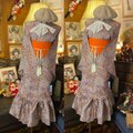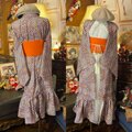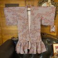 小花がたくさん咲き誇るデザインが可愛らしいリメイク着物です。裾に施されたフリルが女性らしさを一層引き立て、和と洋のエッセンスが見事に融合しています。