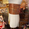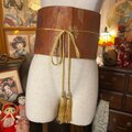 和洋折衷 名古屋帯 サッシュベルト 飾り帯 リメイク ハンドメイド 和装 ウエストマーク レトロ古着 L〜LL 温かみのあるオレンジ色× 繊細な葉や花の模様 ROB-48