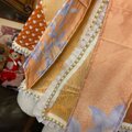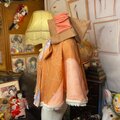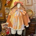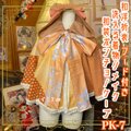 【着物リメイクポンチョケープ 和装コート フード付き パールフリル ハイカラおりぼん 洗える 化繊 レトロ 古着 ハンドメイド 和洋折衷 オレンジベージュ等のパステルカラーと花柄や幾何学模様 PK-7】