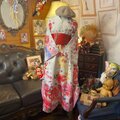 リメイク 振袖着物ロングワンピース 和洋折衷 柔らかい色合いに咲く色とりどりの花 KW-622 《みずたま畑のプレミアムお着物》
