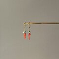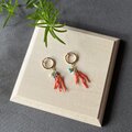 本珊瑚とターコイズ、淡水パール フープ イヤリング