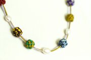 ひとつひとつの結びと淡水パールは組紐上に固定されています。