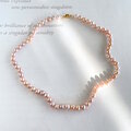 肌に寄り添う、優しい桜ピンク色の淡水真珠のチョーカーです。