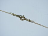 長さは約40cm、金属部分にはすべて18金を使用しており、チエーン部分はシンプルな甲丸、留め具とチエーンを結ぶ部分はまるかんではなくビーズを挟んで眼鏡留めにし、外れにくいようにいたしました。