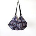 アフリカ布の魅力に実用性を備えたバッグです。裏地に帆布を合わせた丈夫な作りで、荷物を出すと八角形の形になって折りたたむことも可能です。