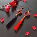 アジアンコード(1mm)で作った梅結びとタッセルを組み合わせたピアスです。