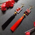 【和風】花札&タッセルピアス(イヤリング)(赤黒)(桜)【着物】【浴衣】【袴】【成人式】【卒業式】【和ゴス】【和ロリ】【さくら