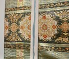 金色地に唐花の短冊と百入茶(ももしおちゃ)色に華紋が織り出されています。