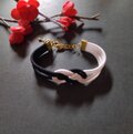 太めのアジアンコード(2.5mm)を2色、抱き淡路に組み合わせたチョーカーです。アクセントとして小さな福鈴を使用しております。クールな印象なので男性にも女性にも(^^)