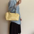 マスタードイエローの革は、使うほど艶と深みが増し、