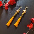 【和風】狐面とタッセルのピアス(イヤリング)(黄色)【チャイナ】【中華風】【着物】【袴】【浴衣】