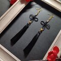 アジアンコード(1mm)で作った几帳結びとタッセルを組み合わせたピアスです。結びとタッセルの間に取り付けたキラキラとしたゴールドの透かしビーズがアクセントとなっております。