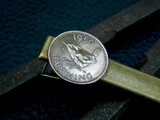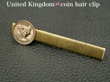 英国の旧1ファージング裏側をアンティークゴールドのクリップに装飾した作品です。