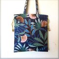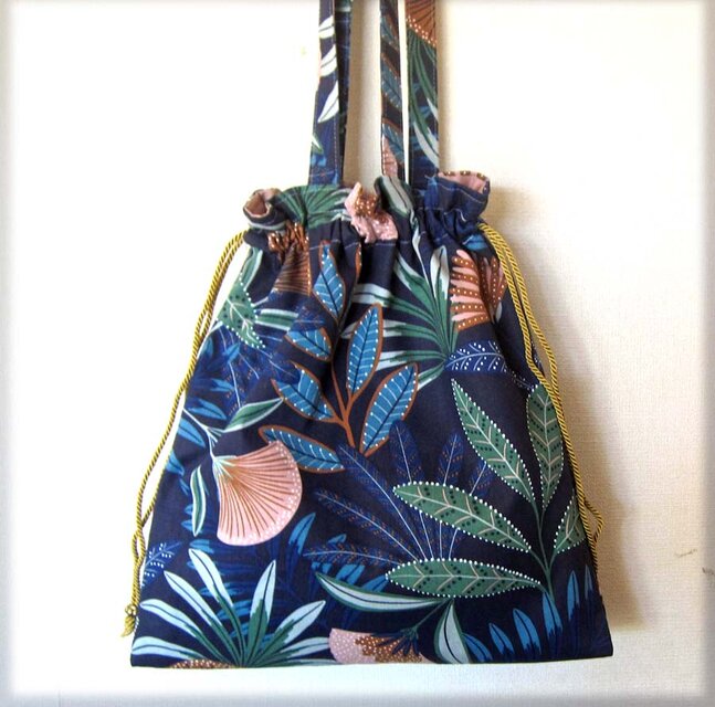 フランス生地 3way 巾着バッグ トートバッグ 花 葉 プランツ