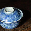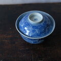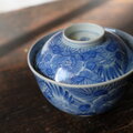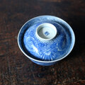 線描きで素敵◆伊万里 花文線描き染付蓋付碗 antiques/骨董 丁寧な暮らし 古民家 江戸期