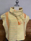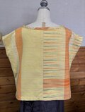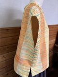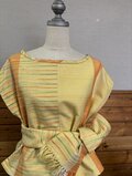 イエローを基調とした生地に、オレンジと緑の繊細なストライプが織り込まれ、伝統的な手織物の風合いを