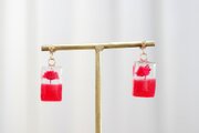 レジンアート 長方形のピアス〈一輪の花・レッド〉