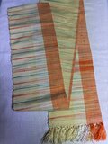 イエローを基調とした生地に、オレンジと緑の繊細なストライプが織り込まれて素敵です。