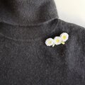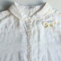 ブローチが下を向いてしまう場合は、服の内側にフェルトを入れ、フェルトとブローチでお洋服を挟むようにして留めて頂くと、見栄えがよくなります。