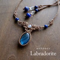 ラブラドライト(マダガスカル産)・ムーンストーン(スリランカ産) 天然石マクラメ編みチョーカーネックレス プレゼント 3562