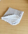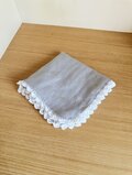 ダブルガーゼを2枚合わせにし、レース編みでふちどりをしました。