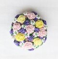 ピンクとイエロー、パープル色の薔薇と可愛い小花を刺繍しています。