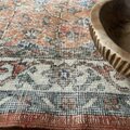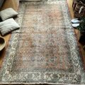 119×196オレンジ 擦れシャビー 草花ボタニカル トルコヴィンテージラグ