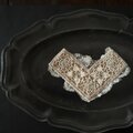 ベースにはフランスのヴィンテージ布を使っています。サテン地の植物柄が描かれた布がレースの隙間からちらっと見えて上品です。