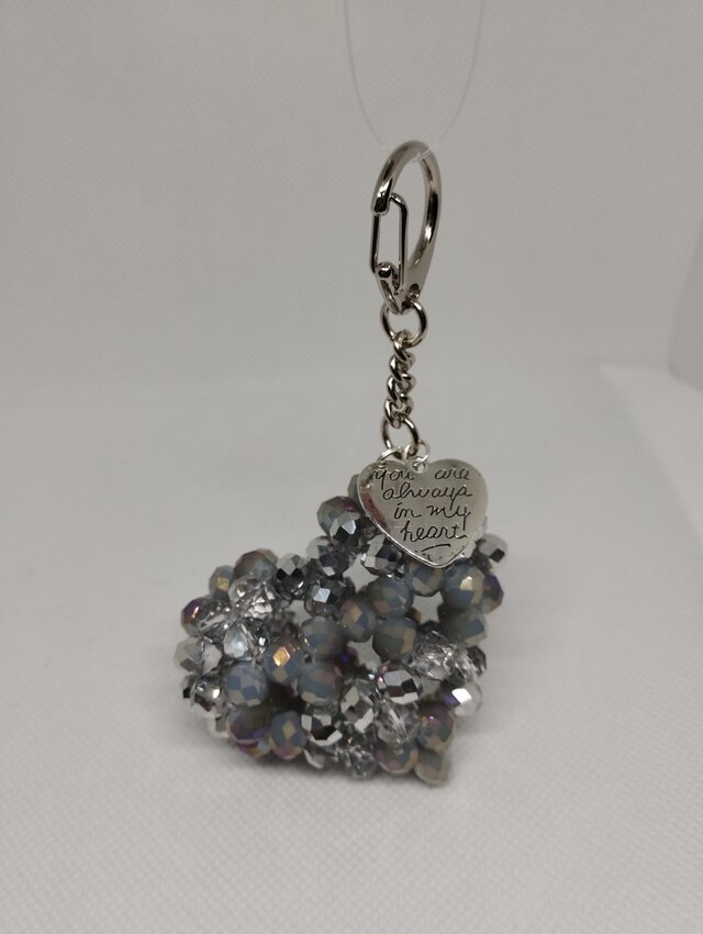 ビーズを編み込んで作ったハートキ—ホルダーです。