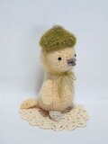 帽子をかぶった小さな小鳥を、優しい色合いのアクリル、ウール、ナイロン素材の毛糸で編みました。
