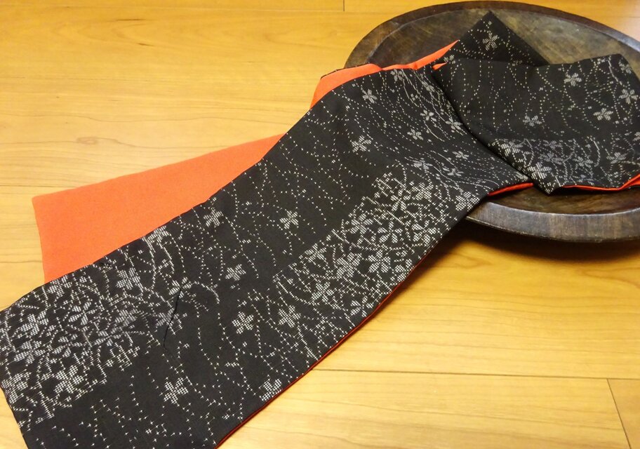 裏には朱赤の縮緬を回しました。すべて正絹です。