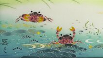 清流の木陰では、さわがに達が遊んでいます。