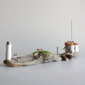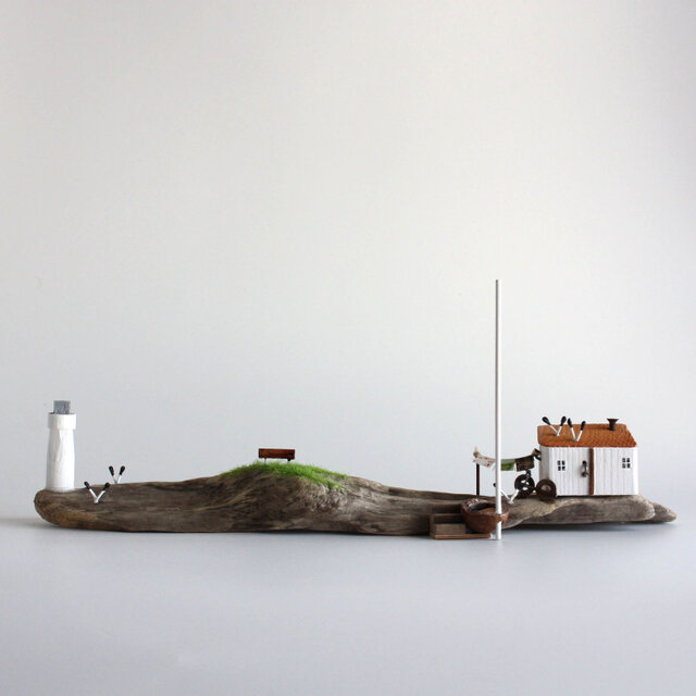 先ほど受け取りました。 流木の風合い、カモメ、岬の先にある白い壁の一軒家…ノスタルジーに誘われ.風や波音が静かに聴こえてきそうな雰囲気のある作品です。早速、リビングの棚に飾りました。 ありがとうございました!