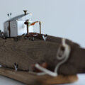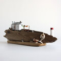 流木、ねじ・釘(赤錆加工)、ホワイトウッド(欧州スプルース、ドイツトウヒなど)、ステイン、ペンキ等で製作。ヤスリでダメージ感を演出しています。「潮騒とカモメの鳴き声、風の音」を感じていただければ幸いです。