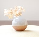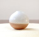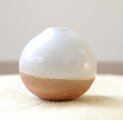 土物らしさを感じられる荒めの白陶土と、すっきりと白くも温かな白釉を使用して制作したころんと丸い形の一輪挿しです。