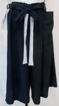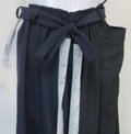 ウェストにはゴムを入れ、ベルト通しを付け共生地で作った紐ベルトをつけています。