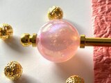 ビーズ内部に反射する粒子素材が封入されており光の当たる角度によって美しく輝きます。